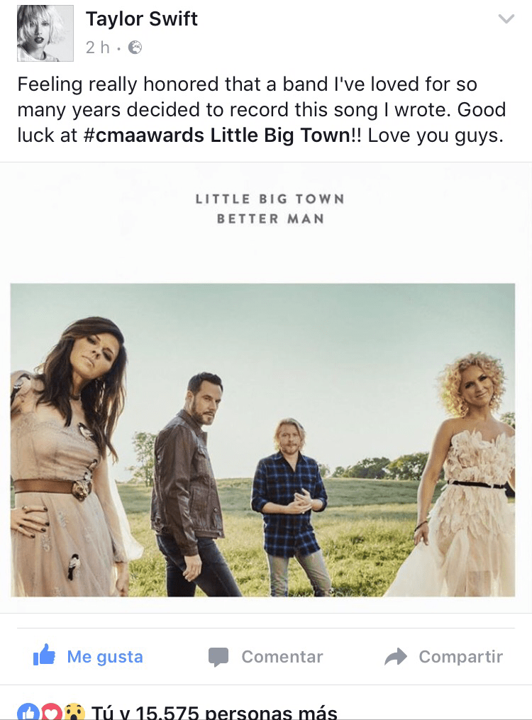 Ayer, 1 de Noviembre, saltaba la noticia, Taylor Swift era compositora del tema Better Man, como la cantante confirmaba en redes sociales: